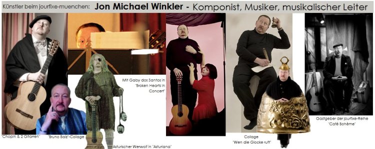 Wie auch immer: Jon Michael Winkler hat mit seinem „Schlussakkord“ bitter ernst gemacht und sich der Bühne nie wieder zugewandt. Für mich ein ewiger Verlust, da die Musik eine so wichtige Rolle in meinen Collagen spielt und Jon diesbezüglich die kongeniale zweite Hälfte unseres Produktionsduos war – und ist – und daher bis heute (März 2021) unersetzlich …