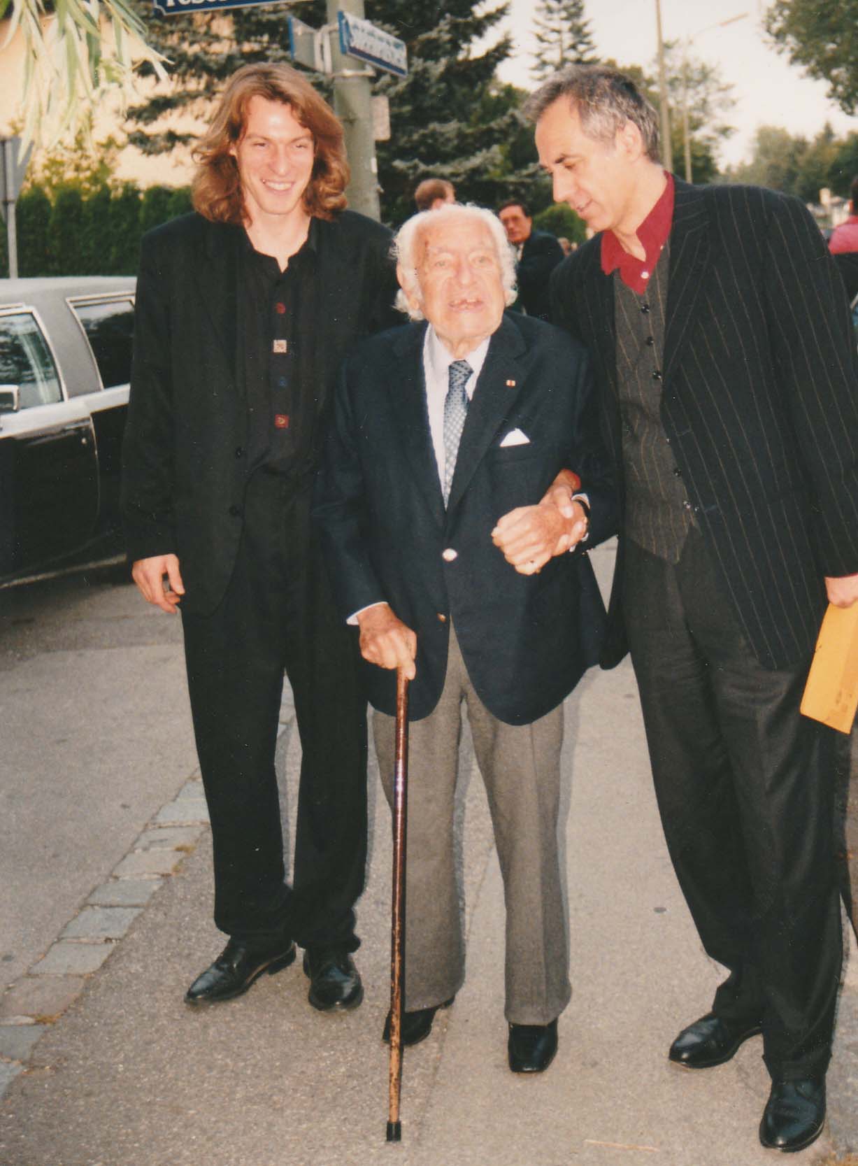 Aber manchmal gab es auch ganz lustige Episoden. Als wir den alljährlichen Kaleidoskop-Preis dem Kabarettisten Bruno Jonas und dem Hollywoodautor und Liedtexter Max Colpet – er schrieb u.a. für Marlene Dietrich das Lied „Sag mir wo die Blumen sind …“ – verliehen, wollten wir einen Gag versuchen. Wir charterten eine Strechlimousine und ließen die beiden Künstler damit am Hinterhoftheater vorfahren. Jene Limousine, in der am Tag zuvor der bekannte Las Vegas Magier David Copperfield durch München kutschiert wurde. Stretchlimousine und Hinterhoftheater, konträrer ging das nicht. Schon bei der Anfahrt gab es Probleme. Die drei TV-Kamerateams schalteten jedes Mal ihre Kameras zu spät ein. Und weil sie uns ja beim Vorfahren und Aussteigen filmen wollten, baten sie uns, nochmals um den Stock zu fahren.