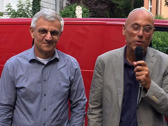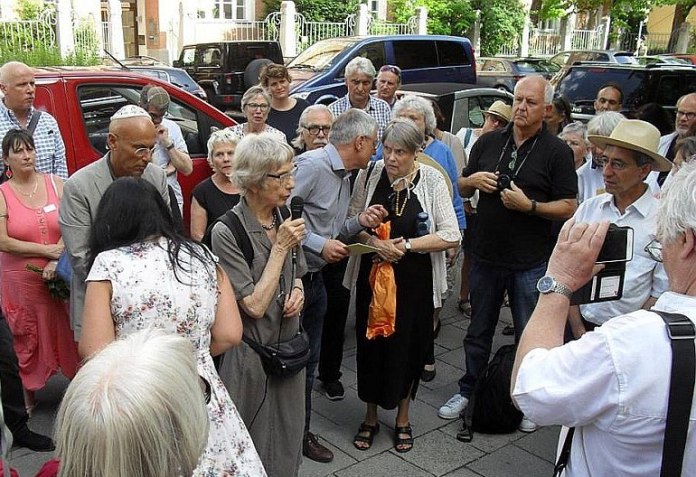 Zuletzt wurde, wie immer ein Kaddish, ein jüdisches Totengebet zu Ehren der Ermordeten gesprochen. Ein lebensbejahendes, von vielen Anwesenden, u.a. Janne Weinzierl, Reiner und Judith Bernstein, Riva Neust u.v.m. mitgesungenes „Shalom“-Lied auf Hebräisch schloss sich dem kontemplativen Moment an und erinnerte einmal mehr daran, dass der Tod zum Leben gehört und somit unbedingt mitten unter uns, entlang der Straßen unseres Alltags!