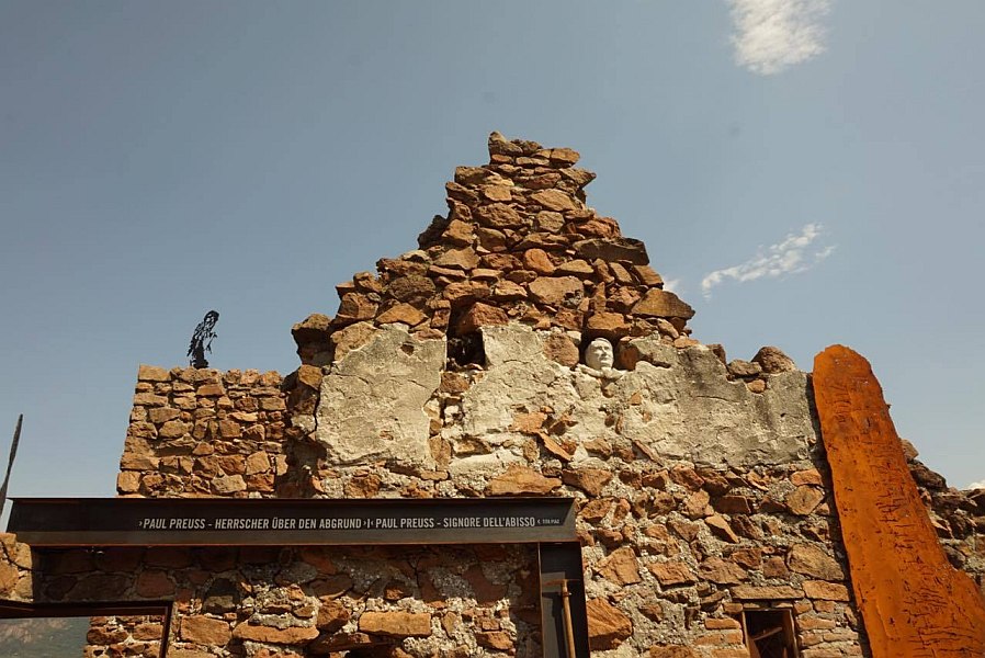 Eine Grotte mit Souveniers aus den Anden, in Lichtspiele getaucht, ein Turmzimmer mit sakralen Gegenständen aus dem Himalaya, beseelt mittels einer Klang-Installation. An den ungewöhnlichsten Stellen, auf Glastüren, am Gemäuer, in Steinboden eingelassen, verteilten sich philosophische Zitate von „A“ wie Aristoteles, bis „Y“ wie Neil Young. Eine schmaler Steg führte zum Rundgang über die Burgmauern und bot einen umwerfenden Blick über Bozen. Die ausrangierten Sessel einer Schwebebahn luden zur Pause ein und Buddhas bevölkerten das Gelände ebenso, wie historische Elemente aus dem Mittelalter und moderne Skulpturen.