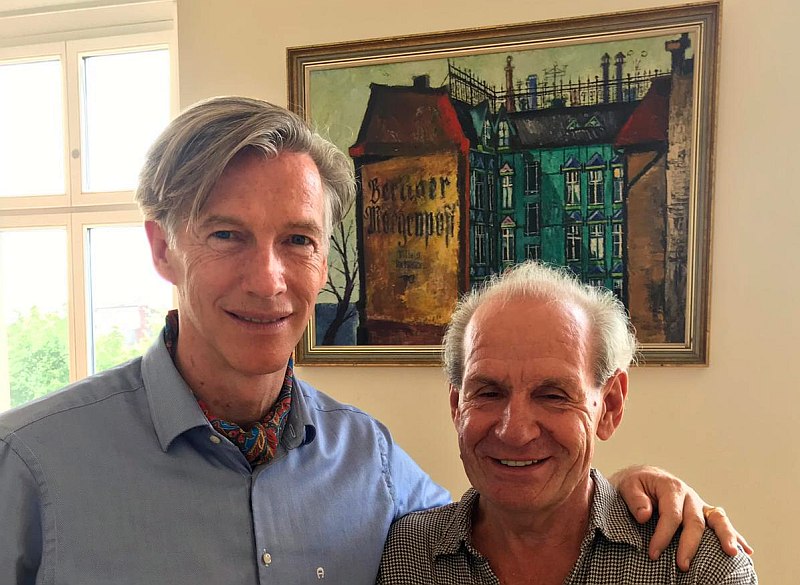 Gemeinsam mit dem Promi-Reporter Sascha Henn/NDR (+2023), der zuvor eine Probe und eine Aufführung meines Historicals in München filmisch begleitet hatte (s.obiges Foto), suchte Albrecht von Weech 2019 ebenfalls – und über meinen Kopf hinweg – Jürgen Draeger in Berlin auf. Man witterte eine heiße Story und vermied daher vorsorglich, mich in dieses Vorhaben einzuweihen… 😉