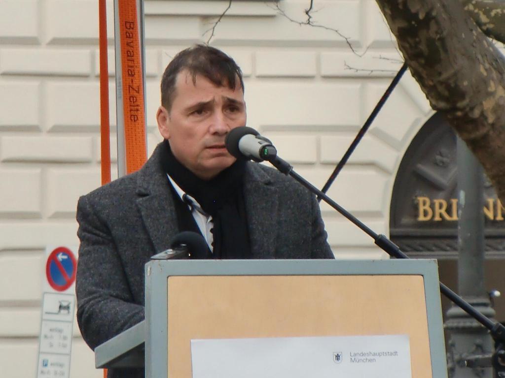 Auf obigem Foto ist er am Platz der Opfer des Nationalsozialismus in München zu sehen, bei einer Ansprache zum > 75. Jahrestag der Deportation Münchner Sinti & Roma
