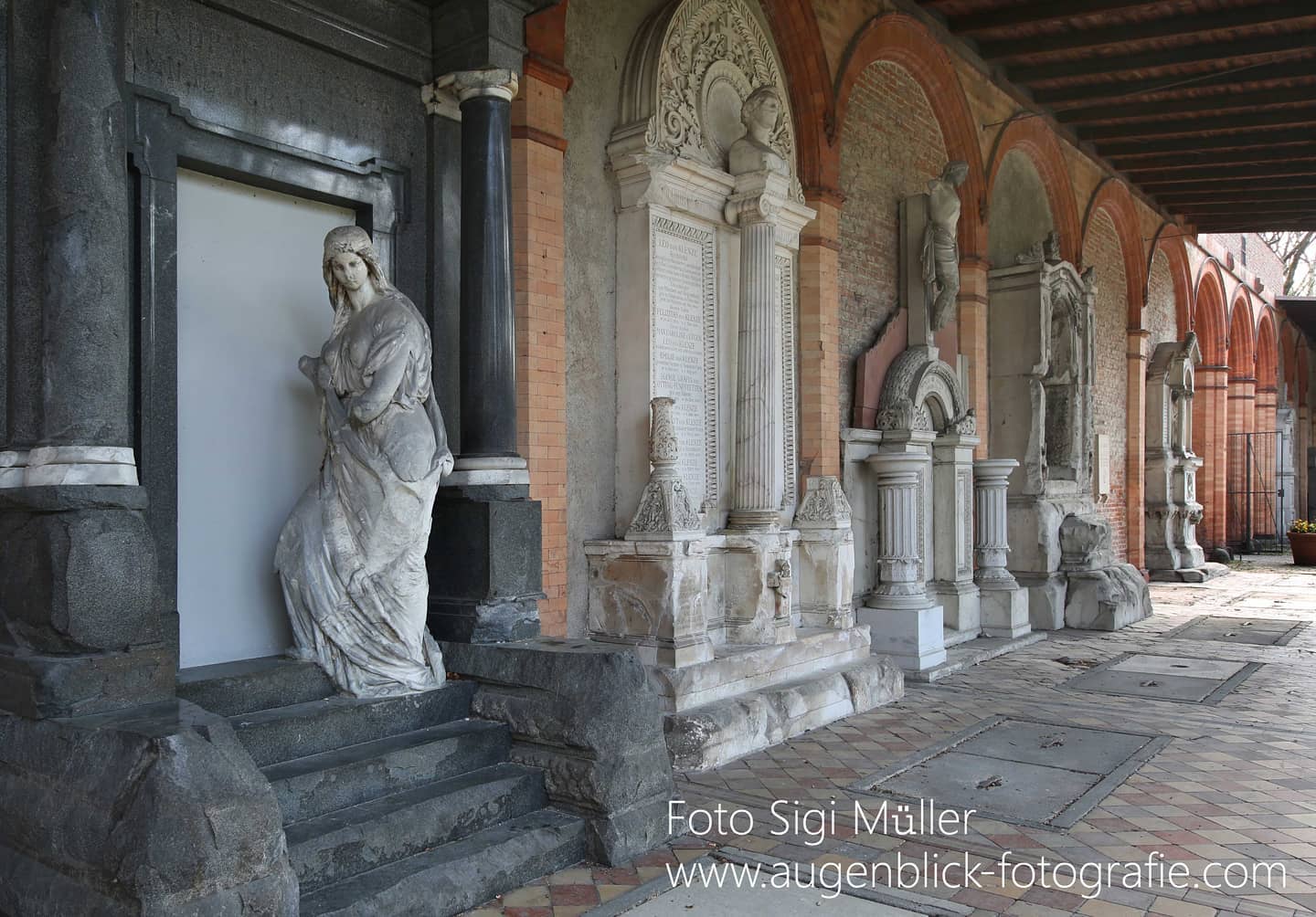 Nachdem AZ-Stadtspaziergänger Sigi Müller nun schon seit über sechs Jahren allwöchentlich das Innen- und Außenleben unserer Stadt in seiner Kolumne durchforstet, wundert es nicht, dass sich jetzt seine Wege mit denen von Florian Scheungraber auf dem Alten Südlichen Friedhof in München gekreuzt haben. Diese Begegnung war überfällig, denn der ehemalige Zentralfriedhof ist einer der herausragenden Orte Münchens, und das nicht nur auf Grund der markanten Optik seiner Außenmauern aus Backstein ..! Allerdings haben letztere erheblich zu seiner Schlüsselstellung beigetragen: Auf Grund ihrer Höhe und Schutzfunktion konnte sich im Innern ein Biotop seltener Tier- und Pflanzenarten entwickeln, gefördert durch ein eigenes Mikro-Klima, so dass dieser Friedhof seit 1982 nicht nur unter Denkmal- sondern auch unter Naturschutz steht.
