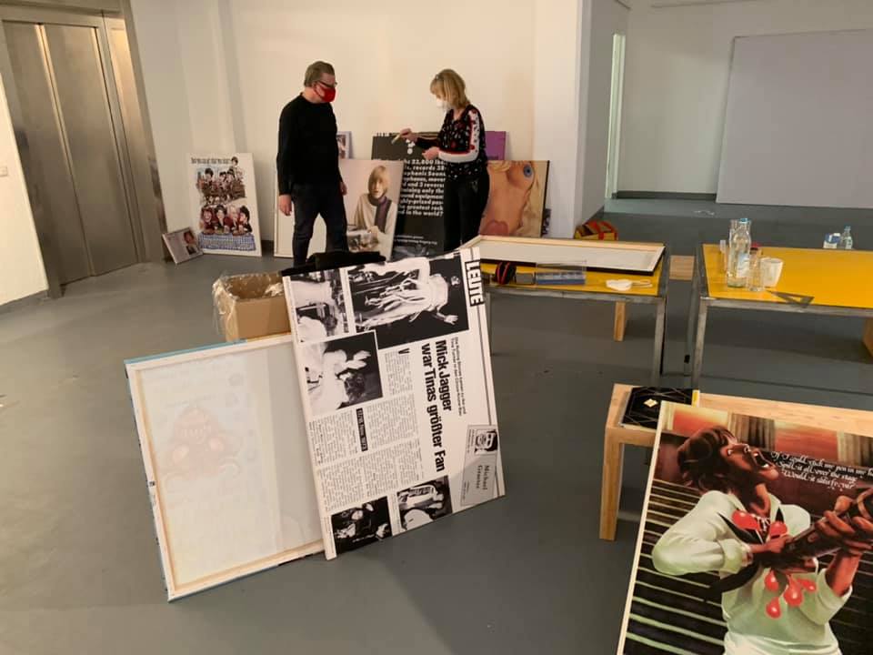 Viel Raum in der Pasinger Fabrik für die Exponate bedeutet auch ein Mehraufwand an Arbeit, bis jedes Stück seinen Platz gefunden hat. Auch bei der Stones-Ausstellung wieder dabei: Ein Riesenposter der Band, zu dem man sich fotohalber dazugesellen kann, wie Herbie Hauke es auf dem Foto rechts unten demonstriert …