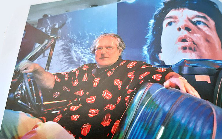 Wie Herbert „Herbie“ Hauke (Foto li) in den Besitz dieses Schmuckstücks gelangte, das 2015 Highlight einer Ausstellung des Rockmuseums in der Eissporthalle München war (Foto re, Marc Schippling), verrät der Katalog zur Ausstellung 2021 „The Magic World of the Rolling Stones“ und zeigt auch gleich noch den Original-Fahrzeugbrief von „Michael Philip Jagger“ …