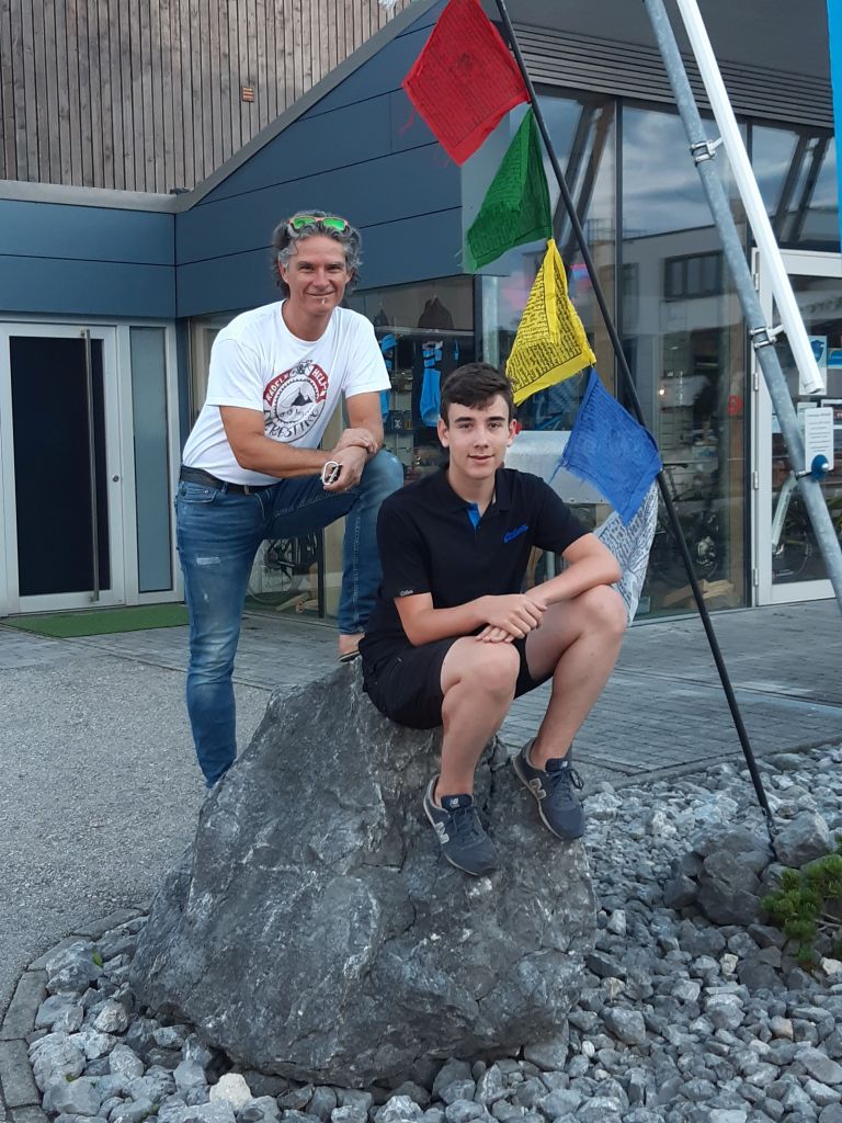 Während mein Enkel (obiges Foto rechts) zu einer ausgedehnten Radl-Tour aufbrach, erzählte mir Markus alles Wissenswerte über Gold für Kristi, KUNST für Kristi sowie die tragischen Ereignisse, die zu seinem Engagement in Nepal geführt hatten.