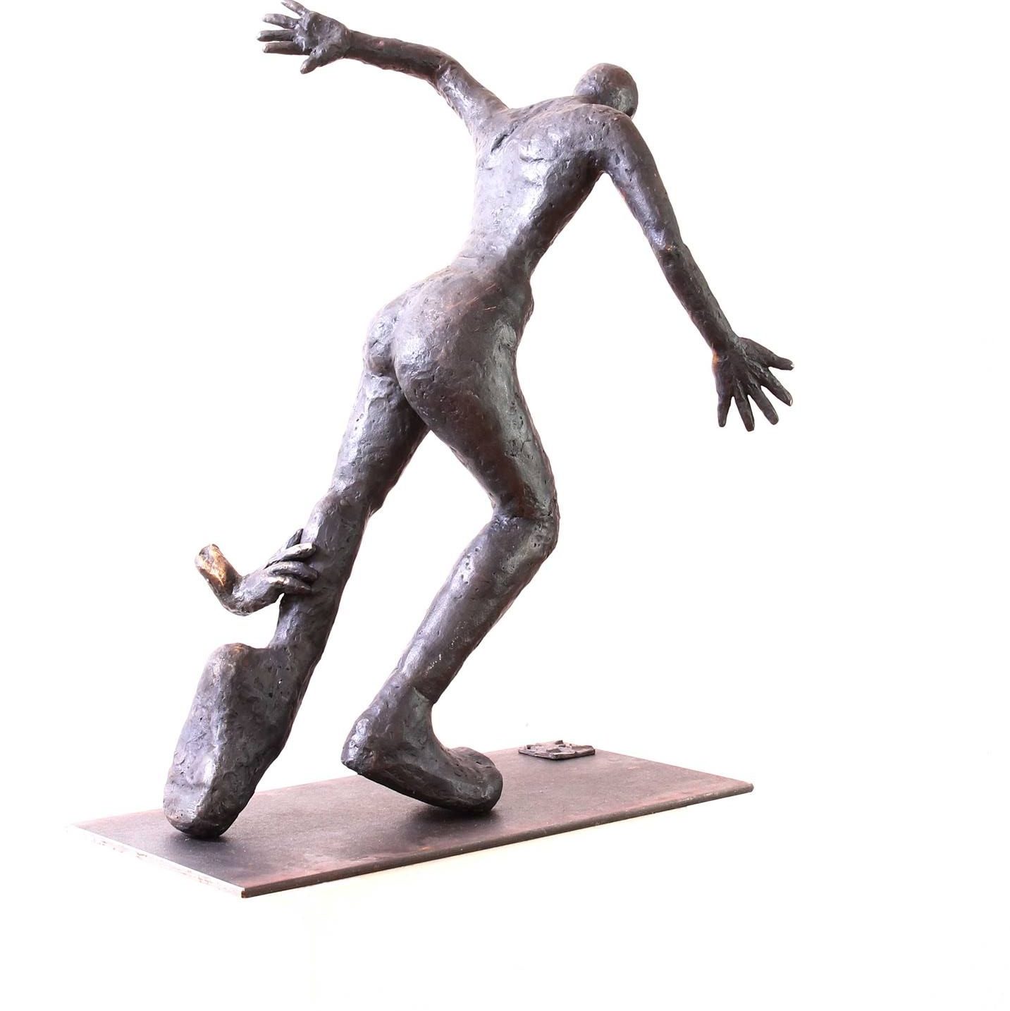 Andrea Matheisen: Die Hand, die das hintere Bein zurück hält, ist leicht goldfarben poliert. Die Figur hält den Kopf ganz leicht und zögerlich zur Seite, weil sie spürt, dass da etwas an ihrem Bein passiert…