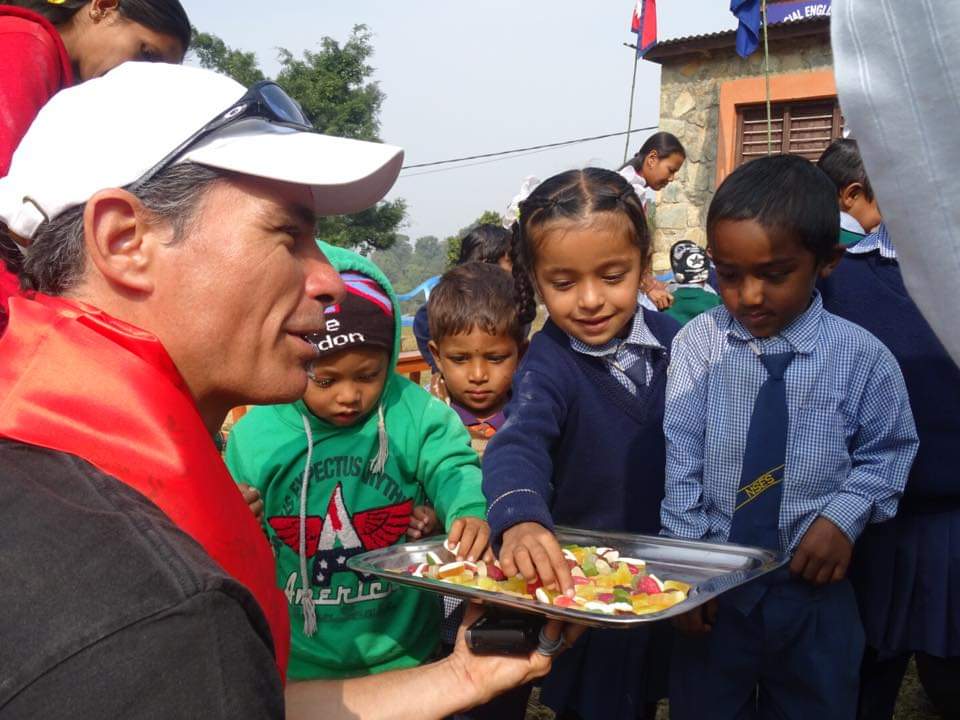 Ideen ohne Ende, um Geld für das Kristi-Schulprojekt zu sammeln: Markus Wössner, rechts mit „seinen“ Schulkindern in Kristi/Nepal, s. auch u. EINE SCHULE IM HIMALAYA