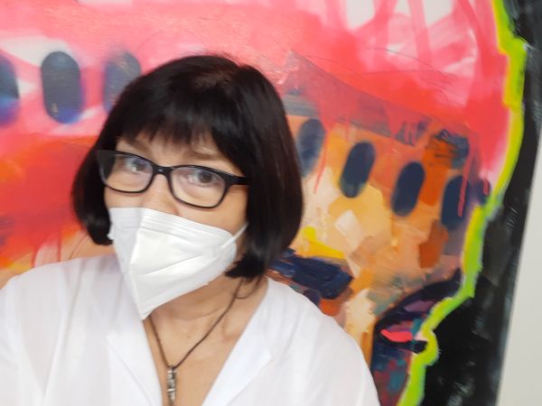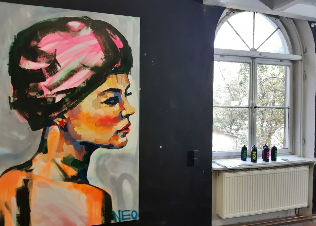 Der gelernte Bühnenmaler lebt inzwischen seit 14 Jahren in Deutschland, wo er ein Atelier in Nürnberg unterhält. Daher habe ich ihn auch erst heute persönlich in München kennenlernen können, bei seiner Finissage auf der Praterinsel 3 – 4, wo er drei Tage lang mit seinen Bildern gleich alle Räumlichkeiten belegt hat. Das empfiehlt sich auch, angesichts der Großformatigkeit seiner Exponate und deren einnehmender Farbigkeit.