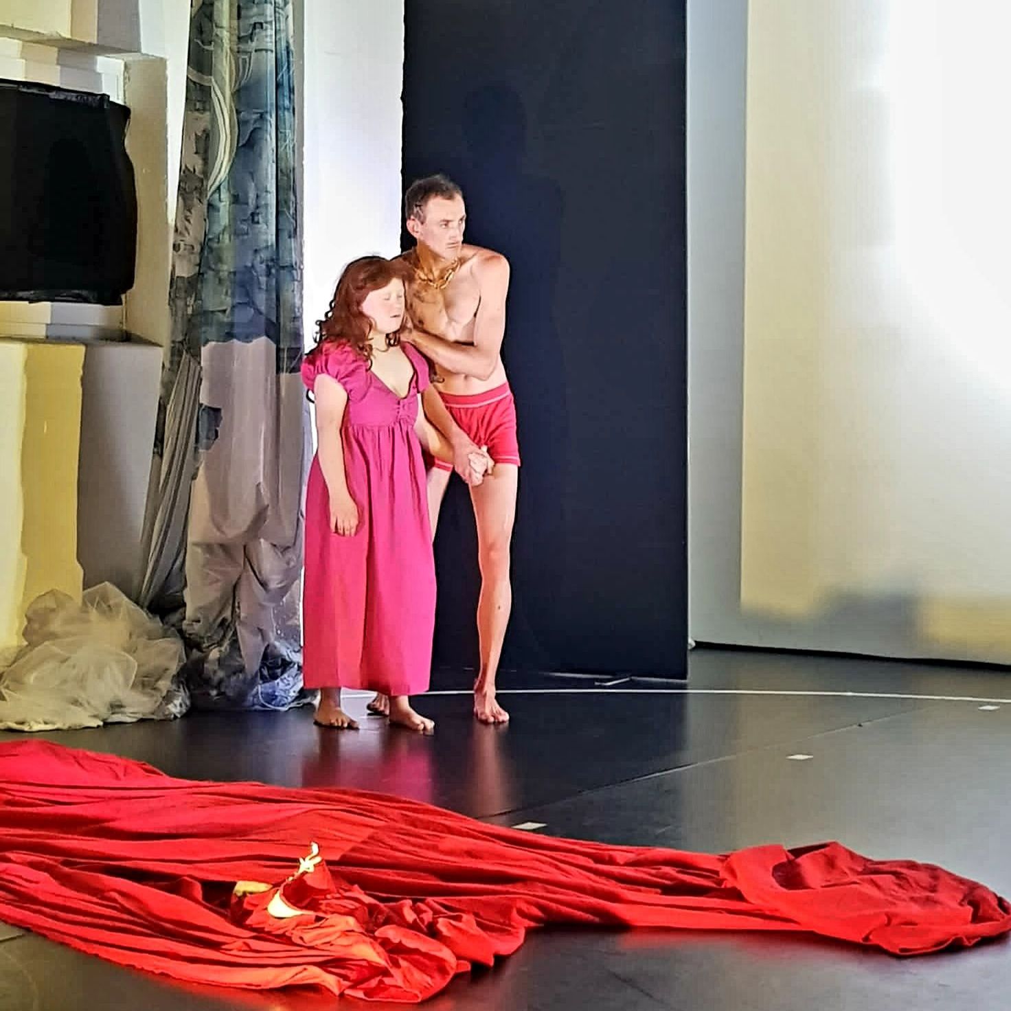 Foto rechts mit Lena Flögel und Jan Meyer (künstlerischer Leiter der FBM und hier Regieassistenz)