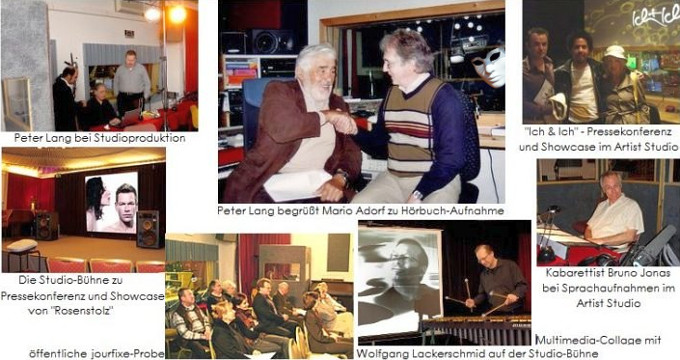 Bereits ab 2004 räumte Peter Lang Jon Michael Winkler und mir die Chance ein, mietfrei bei ihm die multimedialen Elemente zu unseren Bühnen-Collagen/Historicals zu entwickeln und die Studio–Bühne für Proben und Durchläufe vor Testpublikum sowie für Präsentationen zu nutzen, wie zum Beispiel bei der Langen Nacht der Musik.