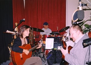 rechts gehen Peter Lang und ich nochmals ein Skript vor den Tonaufnahmen durch