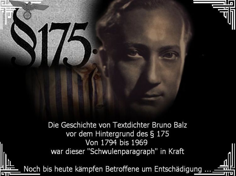 Edit: Bruno Balz hat übrigens seine Cousine Selma geheiratet, der er sehr zugetan war. Nicht irgendeine Frau, die ihm von der Partei zugeteilt wurde. Das sind alles so lächerliche Erfindungen!
