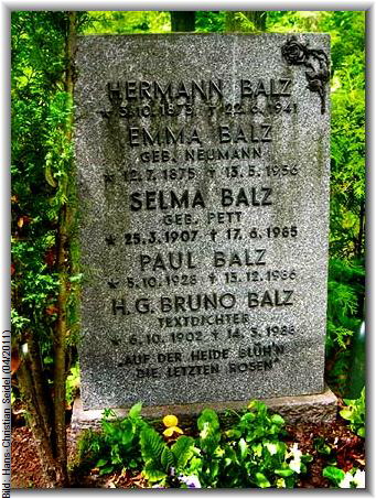Diese Schilderung führte zu einem herzhaften Lachanfall seitens Micaela Jary Gabriel am anderen Ende der Leitung, als ich ihr jetzt von dieser Darstellung berichtete. In Wirklichkeit nämlich ruht Selma Balz, geborene Pett, friedlich im Familiengrab in Berlin Wilmersdorf, neben Brunos Eltern sowie seinem Adoptivsohn und de facto Lebensgefährten Paul, der zwei Jahre vor Balz starb…