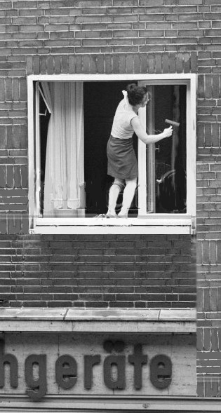 Sie stürzt beim Fensterputzen in Lauras Wohnung ab.