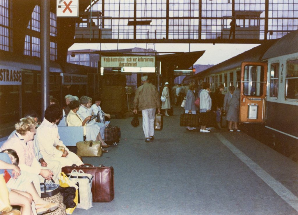 Als sie der Grenzpolizist am Pass-Schalter nach ihrem Reisegrund fragt, erwidert sie ‚Ansiedlung im Paradies‘ zwecks Arbeitssuche, woraufhin dieser ihr antwortet, die DDR sei kein Paradies, sondern ein sozialistischer Staat, in dem Arbeitskräftemangel herrsche und jeder Werktätige willkommen sei.