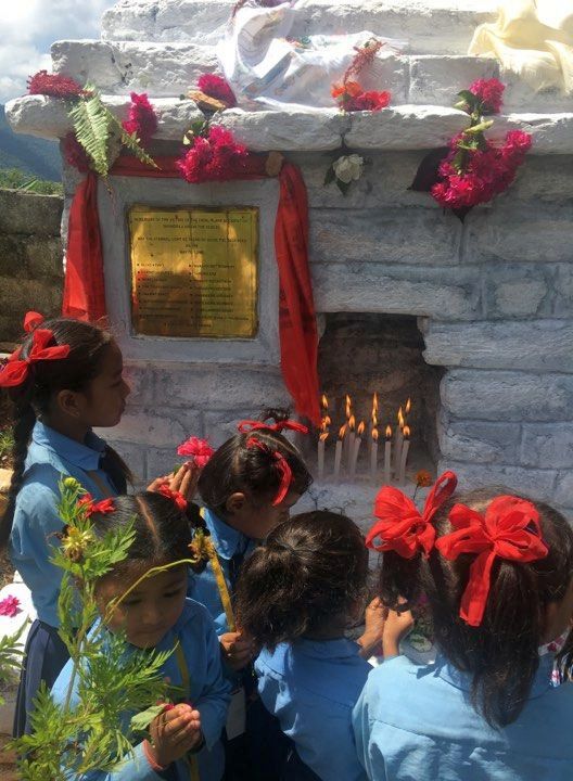 Knapp einen Kilometer Luftlinie von Ort der Tragödie entfernt, befindet sich inzwischen, auf Initiative von Markus, eine Schule für nepalesische Kinder und auf dem Schulhof befindet sich eine Stupa, die an die Opfer – darunter Markus Schwester und ihr Mann – erinnert.