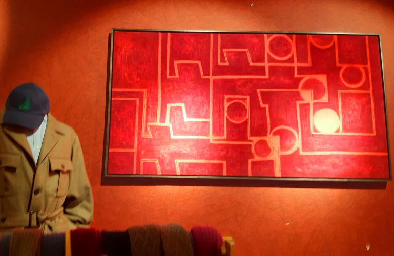 Malerei zu Mokassins? Die skeptische Frage stellte sich mir im Vorfeld der obigen Ausstellung des Autors und Malers Haralampi Oroschakoff, denn schon oft habe ich mich wundern müssen, an was für Wände der Mangel an Ausstellungsflächen mitunter auch gelungenste Werke nagelt. In diesem Fall jedoch schwanden meine Bedenken, sobald ich die Räumlichkeiten von Ed.Meier in der Münchner Brienner Straße betrat, denn das Ambiente entpuppte sich selbst als kleines Kunstwerk, das mit unzähligen, liebevoll zusammengestellten Ausstattungsdetails punktet.