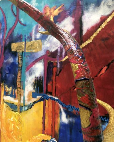 Der virtuelle Streifzug durch die ARTMUC endet wo er begonnen hat: Am Anfang, beim Titelmotiv, das auf der Skulptur (Ton/ Treibholz aus der Isar/ Beton/ Farben) zu Text respektive Bild : „Engel der Zuversichtlich und der Hoffnung!“ beruht. Ihrem Werk legte Künstlerin Maria Bentz-Arens eine komplexe spirituelle Interpretation zugrunde.