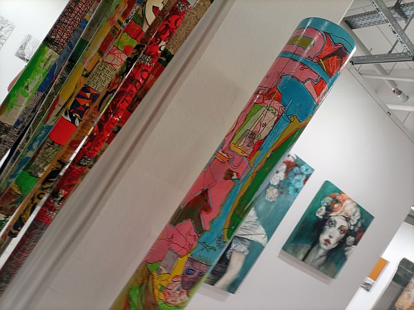 Die Augenweide pur für eine Farbenfrohe wie mich 😉 war die Gruppe bunter Stelen, die einen Teil des geräumigen GALATERY-Standes begrenzte (Foto rechts).