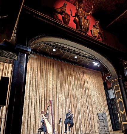 Erkan Inan und sein multikulturelles Team sitzen als PreisträgerInnen in Reihe EINS im Festsaal des Münchner Künstlerhauses, ganz rechts Gina Penzkofer (Habibi Kiosk/Münchner Kammerspiele), Laudatorin der Gruppe, in Reihe 2, Mitte: Dr. Michael Stephan, langjähriger Leiter a.D. des Münchner Stadtarchivs und bekannte Persönlichkeit er Münchner Kulturszene