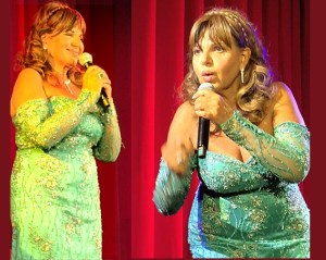 Dem opulenten Rahmen der Soiree zollte auch die Protagonistin selbst Tribut, mit Strass satt auf grünem Satin. Das erwies sich als kongeniales Outfit für einen stimmgewaltigen und sehr mediterran anmutenden Auftritt, einschließlich dem Pathos großer Gesten – man erinnere die legendäre Milva…
