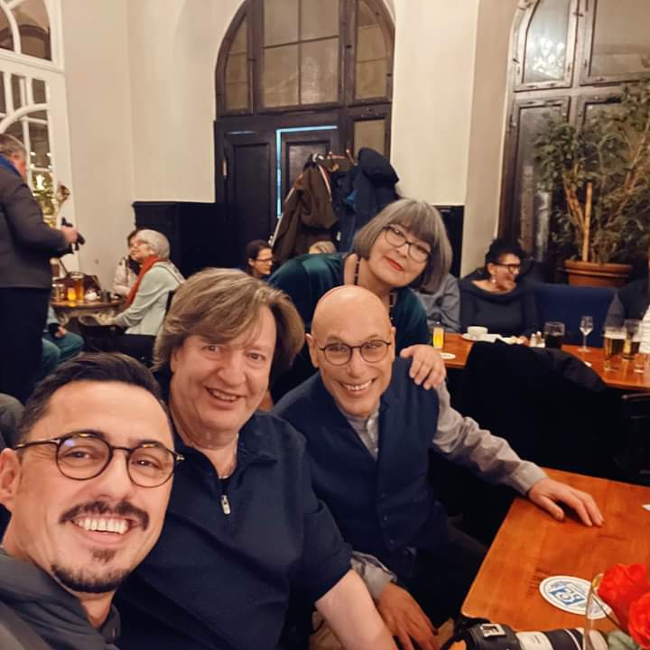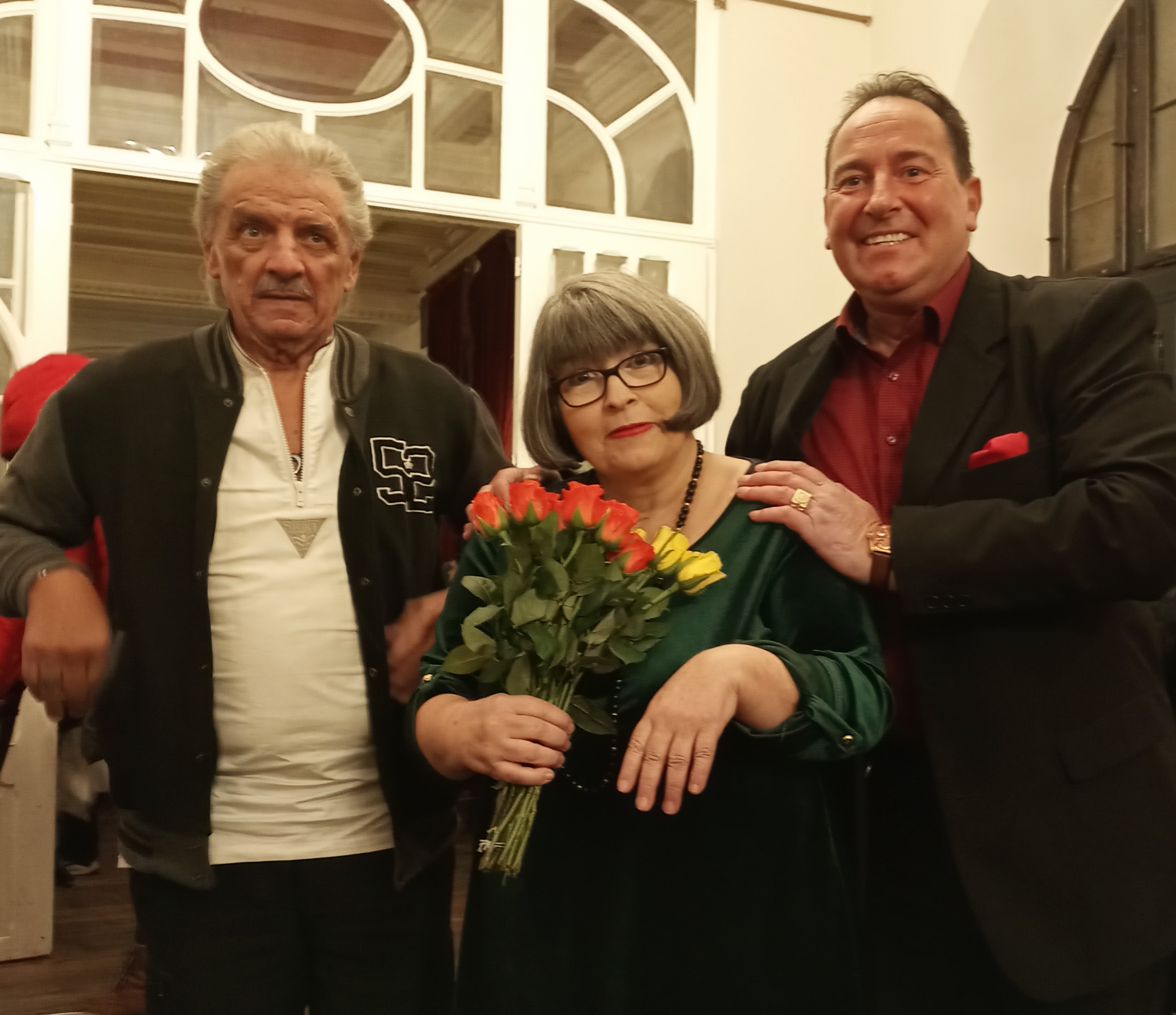 Die Zwei bescherten mir einen der schönsten Momente meines Jubiläums überhaupt, denn sie reisten mit umfangreichem Equipment, Instrumenten und mit Rosen extra aus Augsburg an, um meinen langjährigen Einsatz für Kunst und Kultur allgemein – und für Sinti & Roma insbesondere – musikalisch und menschlich zu würdigen. Solcherart Gesten bleiben unvergessen :-) Dickes Merci Euch beiden!