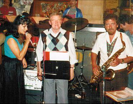 Rechts stehen der Drummer Jochen.. der immer noch mit dem Ten Dollar Jazzband auftritt.
