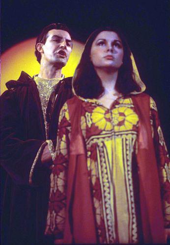 Ich habe in der Produktion eines Passionsspiels die Jungfrau Maria auf der Bühne gespielt. Hinter mir ist der Erzengel Gabriel, die mir die Ankündigung flüstert.